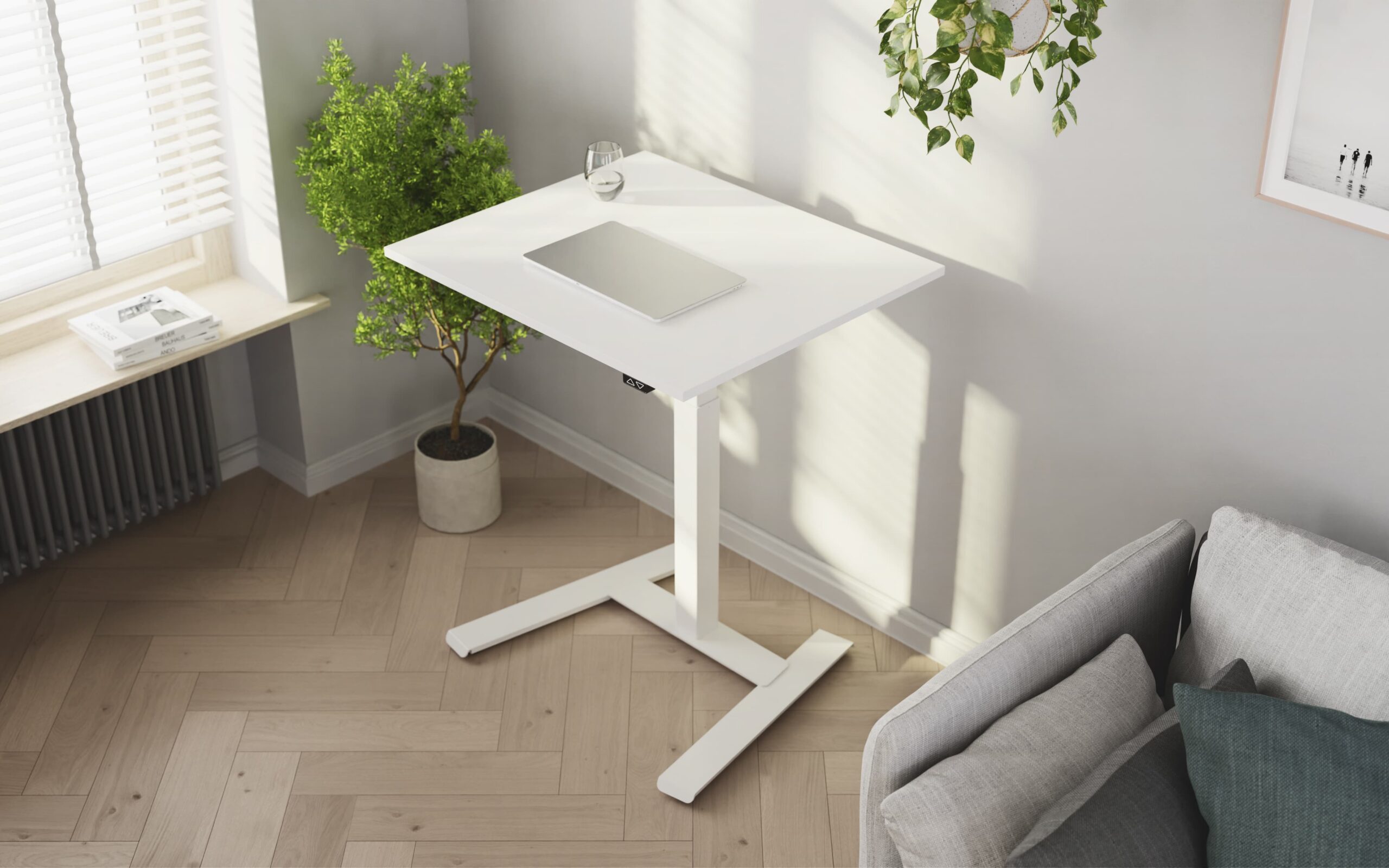 The super compact size of the height-adjustable Grow Up Cn Compact 1 table base is the ideal choice for home offices or offices where you prefer a smaller workspace.