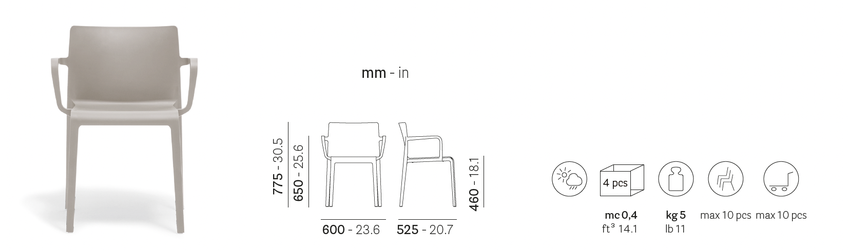 Der Volt HB 675RM ist ein äußerst vielseitiger Kunststoffstuhl mit Armlehnen oder ein kleiner Sessel, der in praktisch jeder denkbaren Innen- oder Außenumgebung eingesetzt werden kann.